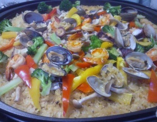 地中海風パエリア作ってみましたぁ、ブブッ実はホットプレートで簡単