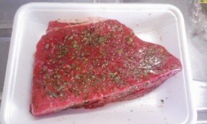 材料: 牛肉ブロック・塩(肉の0.8%)・粗挽き胡椒(適量)