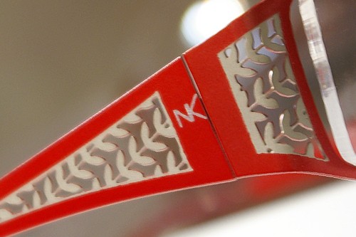 テンプルの構造上問題ない部分を削り(肉抜き)、お洒落な模様を施したNIK03(ニックゼロスリー)のNK410です。