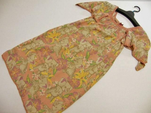 ピンク色 ロゴ、花、ゾウの総柄