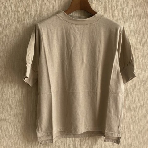 袖と襟にさりげなくタックが入っていて腕を細く見せてくれちゃうTee