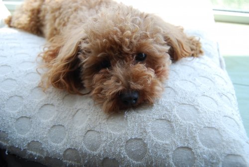 テーブルの下は麦ちゃんの陣地のようです。