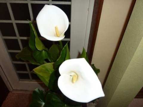 花嫁さんのブーケにも人気のカラーが開花しました。