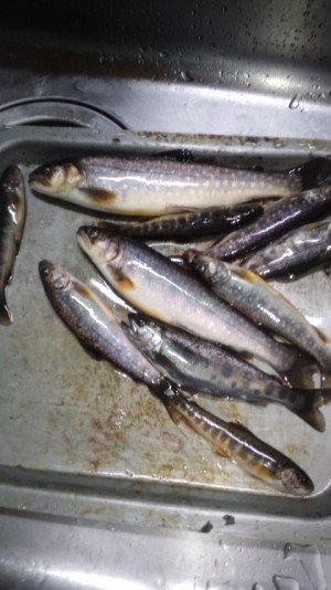 キャンプの醍醐味、釣った魚はその場で頂きます