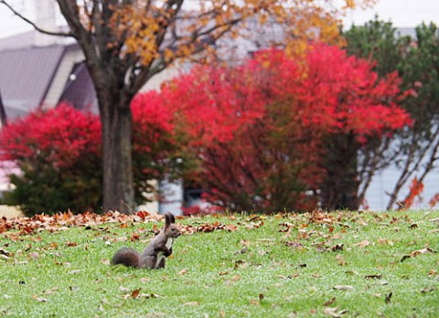 あずさ公園の紅葉とエゾリス