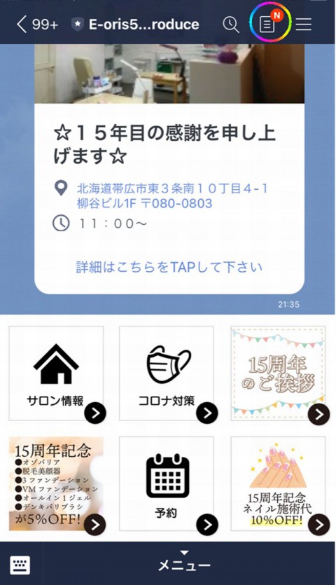 メッセージはもちろん、LINE電話をお使い頂きますと無料です! ご予約をお取になる際にもお使い下さい♪