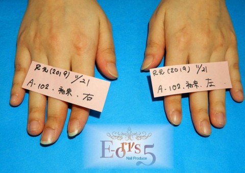 2年前に初めてお越し頂きましたA-102様は、爪をいじってしまう癖があり、そのせいで深爪気味になっているので直したいとお越しになりました。