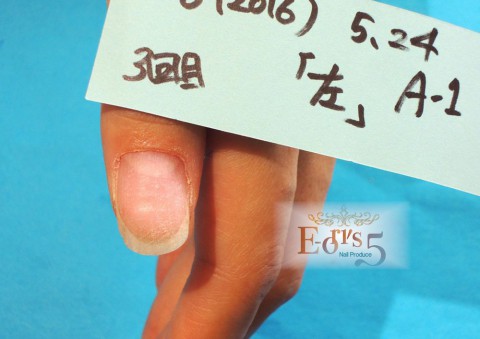 本日ご紹介致しますのは、4回目のお直しにいらっしゃった歳のお爪の様子です。