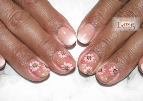 ベースをIKKOさんネイルにし、そこにコスモスを模したお花をポイントに描きました。