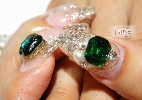 ポイントにエメラルドのデカストーンが、とってもゴージャスで素敵に仕上がっていました♥