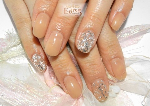 スキンカラーをベースに、プラチナシルバーラメをポイントに重ねたデザインです。