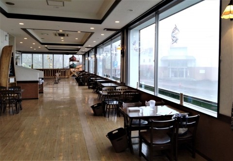 店内は広々して余裕がある。窓からの然別湖の眺望も良い。