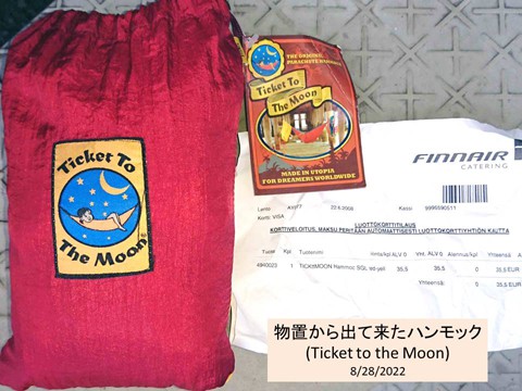 調べてみるとチケット・トウ・ザ・ムーン(Ticket to the Moon)はパラシュート生地でいろいろなアウトドア用品を作っているようだ。フィンランド便で買ったのでフィンランド製かと思っていたが タグにはMade in Utopiaと書いてある。これでは全くわからん。