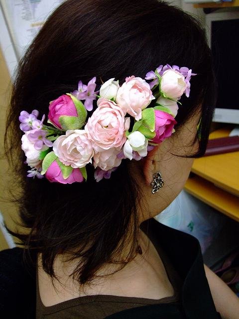 今回新婦様はこのコサージュを耳の後ろ側に沿わせるように付けられるようです!