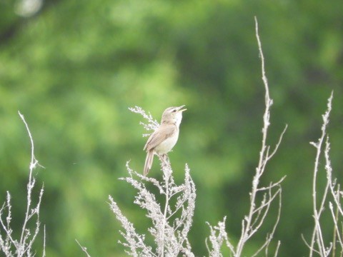 ノビタキが数羽 背の高い草の上に留まっているのが見えました♪( ´θ`)