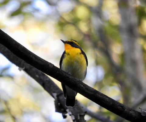 枝の上で 目立つ色の鳥が飛んだのが見えました !!