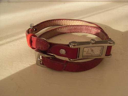 ベルトの先端部分を入れる定革といわれる部分がちぎれてしまったということで同じような赤い革でお作り致しました。