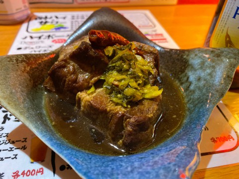 大根、にんじん、ゴボウ、白菜などの野菜とともに、豚の“骨付き肉”というよりも“肉付き骨”と言うべき豚骨が入っています。