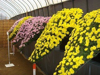 のみなさんの精魂こめた色とりどりの菊がぞくぞくと