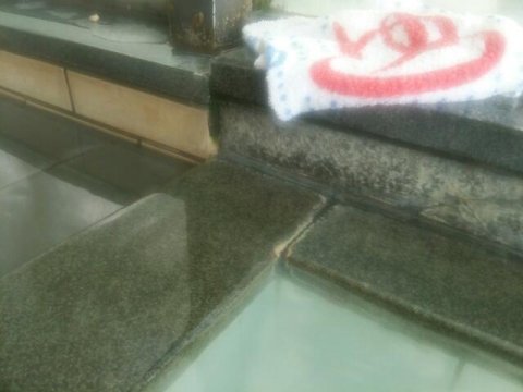 露天風呂にも同じ源泉の湯が投入されていますが、空気に触れて透明になるという説明書きがあります。