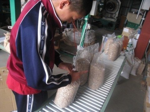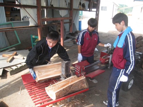 この日は薪割りとペレットの袋詰めのふた手に分かれて