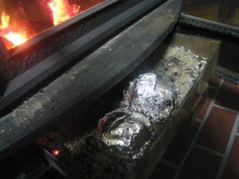 薪ストーブの灰受け皿に並べて待つこと30分・・・
