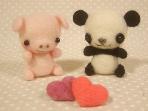 ピンクのこぶたをチクチクと刺しながら、
