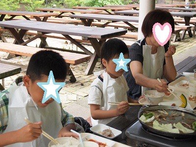 夕方には競馬場に行き、ピザ、枝豆、フランク、かき氷など、食べまくりの子供たち・・・