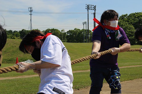青いユニフォームの様なものを着ているのは、とかちの「夢」創出委員会 副委員長 三谷 佳祐(みたに けいすけ)君です(写真下段 右側) と組織改革委員会 委員 霜野 直希(しもの なおき)君です(写真下段 右側)、三谷 佳祐は学生時代にレスリングで全国大会に出場するほどの腕前で自衛隊にも所属しており、圧倒的な強さでグイグイと綱を引き寄せていました。