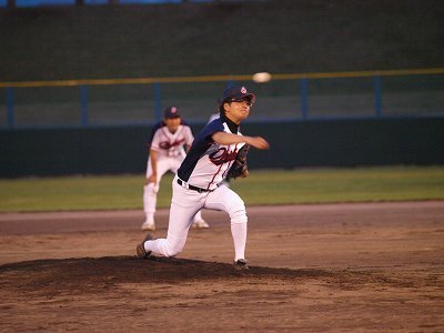 4回は、芽室JCからの助っ人として参加の光川さんが、3番手のピッチャーとして登板。