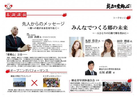 続いて、北海道地区協議会 地区大会運営室 原 智則(はら とものり)君から、「人は心から生まれ変わることができ、他人を思いやることが北海道の未来に繋がります。そして、里を思いやる心が愛郷心に繋がることを地区大会で伝えていきたい。」とご挨拶を頂きました。
