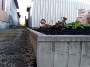 アプローチ部分は掘り起こされ断熱材そして砂利が敷かれました。