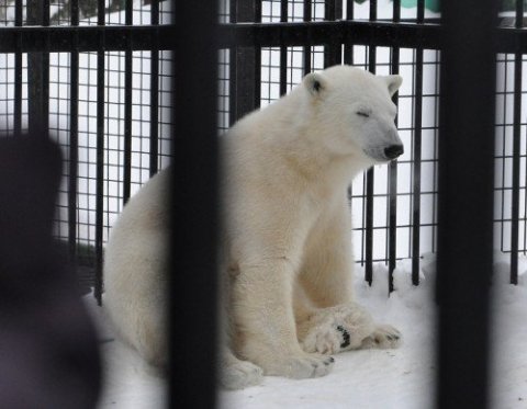 閉園時間直前、アムールトラのスポットが終わってから、再びホッキョクグマ舎に戻ると、相変わらずアイラは眠そう。