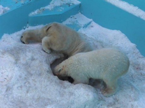 ホッキョクグマは出産前後のメス熊しか雪に巣穴を作らないので、オスのイコキロが掘ることに疑問を抱いているようです。