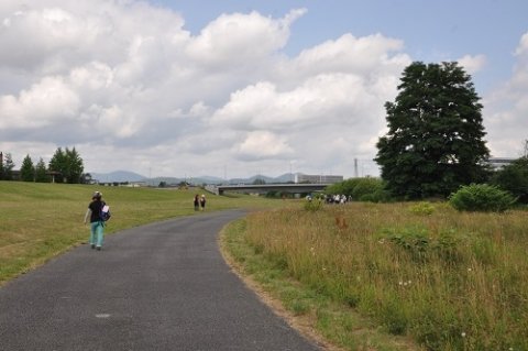 新神楽橋の下をくぐって、忠別川の河川敷を歩きます。