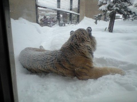 アムールトラの「いっちゃん」にも雪が積もっていました。