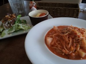 頼んだのはホタテのトマトクリームスパゲッティー