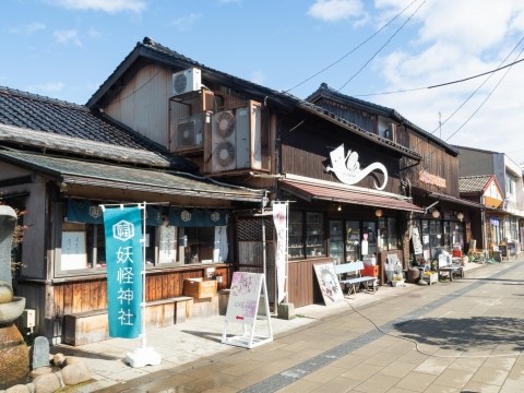 境港駅から水木しげる記念館まで1キロ余り続く商店街は「水木しげるロード」として鬼太郎関連の商品を販売しています。