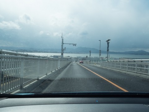 急勾配な橋として有名な「江島大橋」を渡って大根島へ。