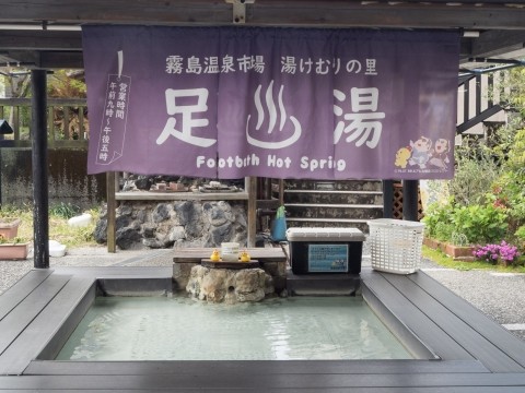 足湯とお土産屋さんがある「湯けむりの里」に立ち寄ってから鹿児島空港へ。
