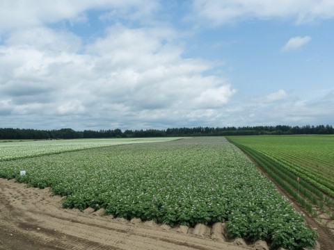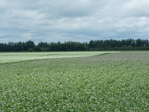 ジャガイモの花は品種によって色が違うのでグラデーションのある花畑ですね。