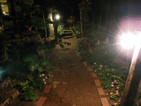灯りに照らされて、何ともいい感じにお庭がライトアップ