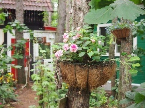 ウッドデッキから通路(エゾリス君の散歩道)沿いの花壇