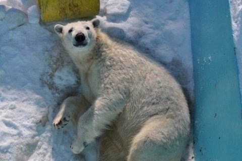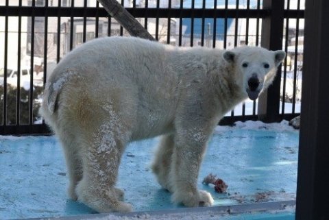 小さい雪の塊を食べ、笑顔(?)のイコロ。