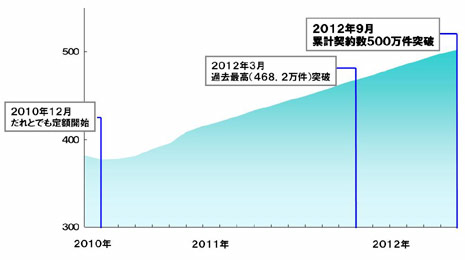 株式会社ウィルコムおよび株式会社ウィルコム沖縄(以下、ウィルコム)は、累計契約数が、2012年9月23日(日)に500万件を突破しましたので、お知らせいたします。