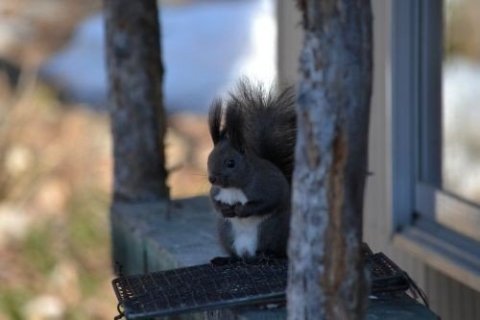 | “ | カラマツの枝に丸い塊が有ります 風に揺れても中々落ちない強固な ものです 正体はエゾリスの巣で有ります 人間が作る以前から彼らは作り 続けた技法でこれからも作り 続けるでしょう |