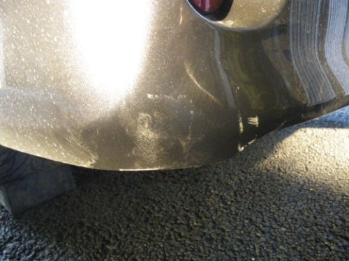 損傷部分の一部の画像なんですが、パネル面積が大きい上に平面部も多い為損傷箇所の3倍位の大きさにヘコミが広がっています