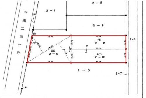 土地情報 | 面積:3,070.33㎡/928.77坪 地目:宅 地 権利:所有権 用途地域: 近隣商業地域 建ぺい率:80% 容積率:200% 現況:宅 地 地勢:平 坦 地形:東西106.55m・南北29.56m(変形地) 接面道路:西側道路幅員22m(国道241号線) 東側道路幅員12m |
