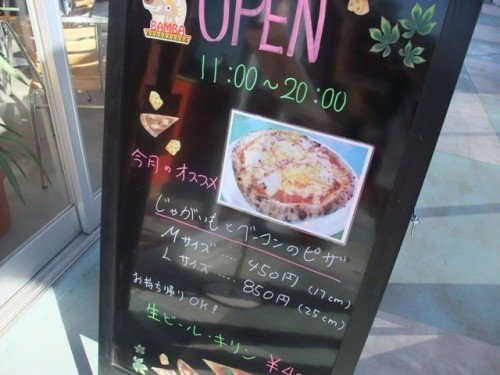 看板は『じゃがいもとベーコンのピザ』