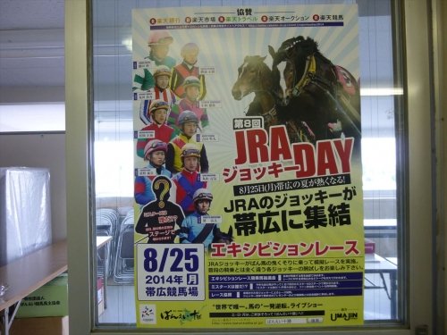 写真は、競馬場内で展示している、過去のジョッキーDayのポスターです。